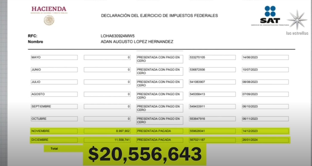 De esa cifra, 8.9 millones provinieron de GH Servicios Empresariales, una empresa señalada como fantasma por el SAT. Además, en diciembre de ese mismo año, Operadora Turística Rabate transfirió 11.5 millones; esta compañía había obtenido contratos con el gobierno de Tabasco cuando él encabezaba la administración estatal.