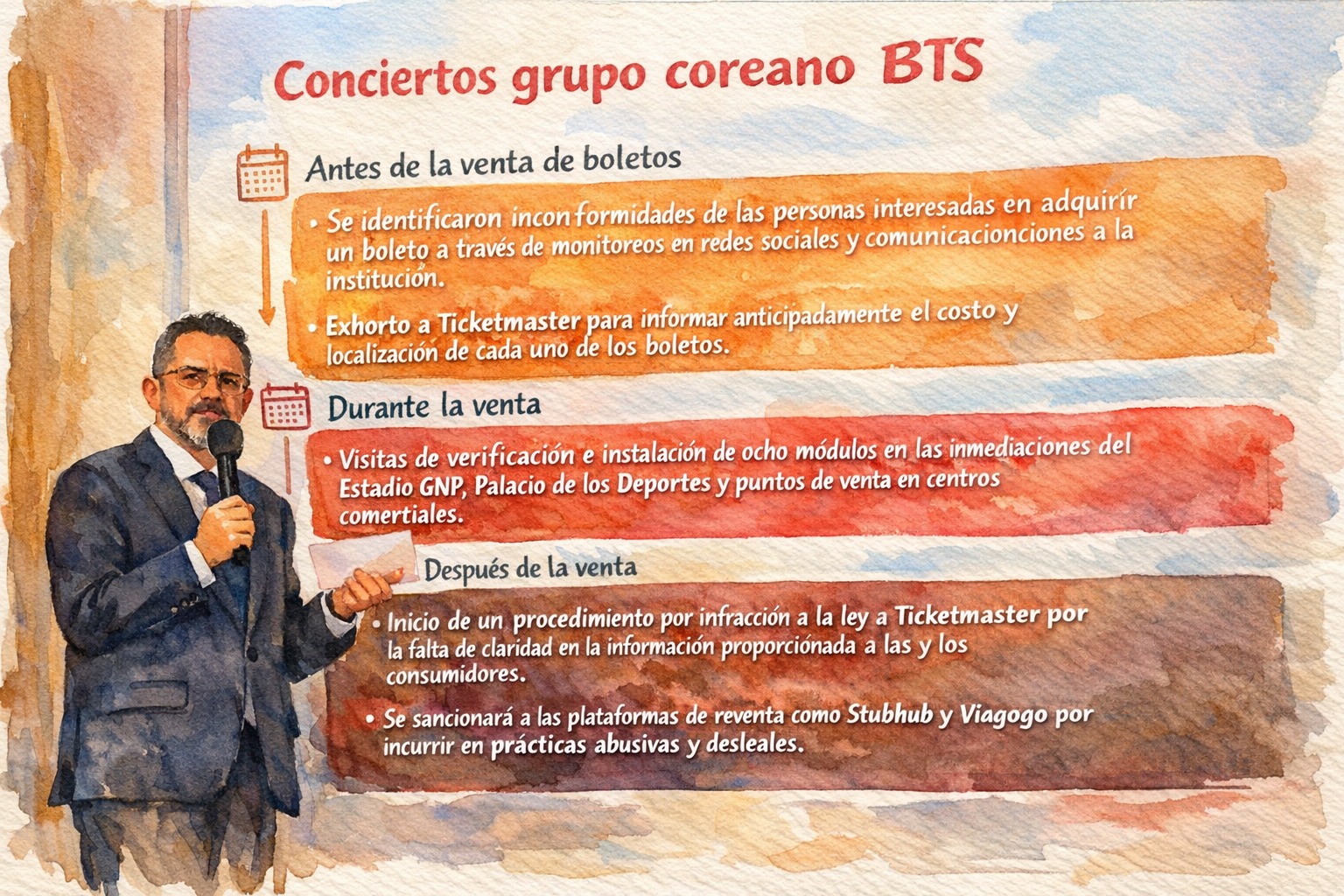Todo arrancó con el anuncio de solo tres fechas de BTS en el Estadio GNP Seguros de la Ciudad de México, programadas para mayo de 2026, frente a una demanda calculada en alrededor de un millón de personas interesadas en conseguir un lugar. La brecha entre esa marea de fans y las cerca de 150 mil localidades disponibles se volvió un muro difícil de esquivar: filas virtuales saturadas, reventa encendida y una sensación de exclusión que corrió rápido en TikTok, X e Instagram. En cuestión de horas, lo que parecía un asunto de boletaje terminó encima de la agenda pública y llegó a la conferencia matutina. Aquí, la Procuraduría Federal del Consumidor apareció como posible dique frente a abusos en venta y reventa de entradas, empujada por denuncias de usuarios que reportaron fallas en el sistema y precios inflados.