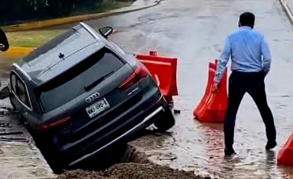 Un conductor cayó dentro de una excavación en la carretera Ixtacomitán-Villahermosa la mañana de este lunes, en las inmediaciones del puente que cruza el río Mezcalapa. De acuerdo con los reportes preliminares, el conductor no se percató de los trabajos en curso y terminó dentro del hueco abierto sobre la vía.