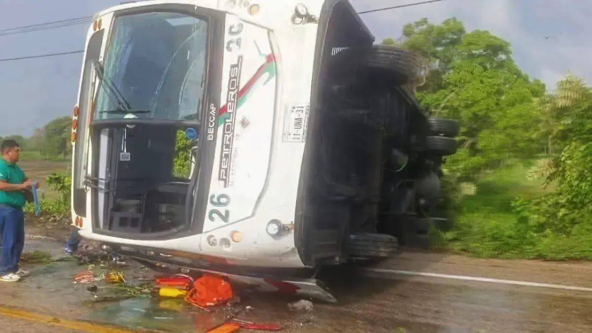 Vecinos de la villa Macultepec y automovilistas auxiliaron a los pasajeros, quienes fueron sacados por las ventanas y puertas de emergencia. El autobús, perteneciente a la sección 26 de un sindicato petrolero, terminó volcado sobre un costado en el acotamiento de la carretera.