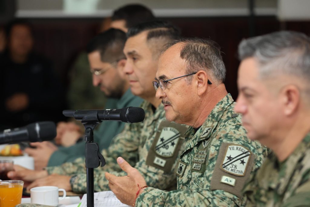 Junto al comandante de la 38° Zona Militar, Antonio Ramírez Escobedo y acompañado del secretario de Seguridad y Protección Ciudadana, Serafín Tadeo Lazacano, expresó que la estrategia conjunta solo tendrá resultados si se efectúa con apoyo mutuo y mucha coordinación.