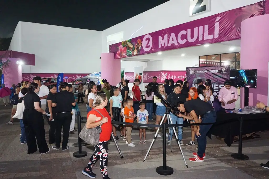 Una de las atracciones más destacadas será la instalación de entre 10 a 15 telescopios afuera de la nave 2 del Parque Tabasco Dora María. Estos instrumentos permitirán a niños, jóvenes y adultos observar directamente fenómenos astronómicos que normalmente permanecen invisibles al ojo humano. Los visitantes podrán contemplar cráteres lunares, manchas solares y otros cuerpos celestes bajo la guía de especialistas.