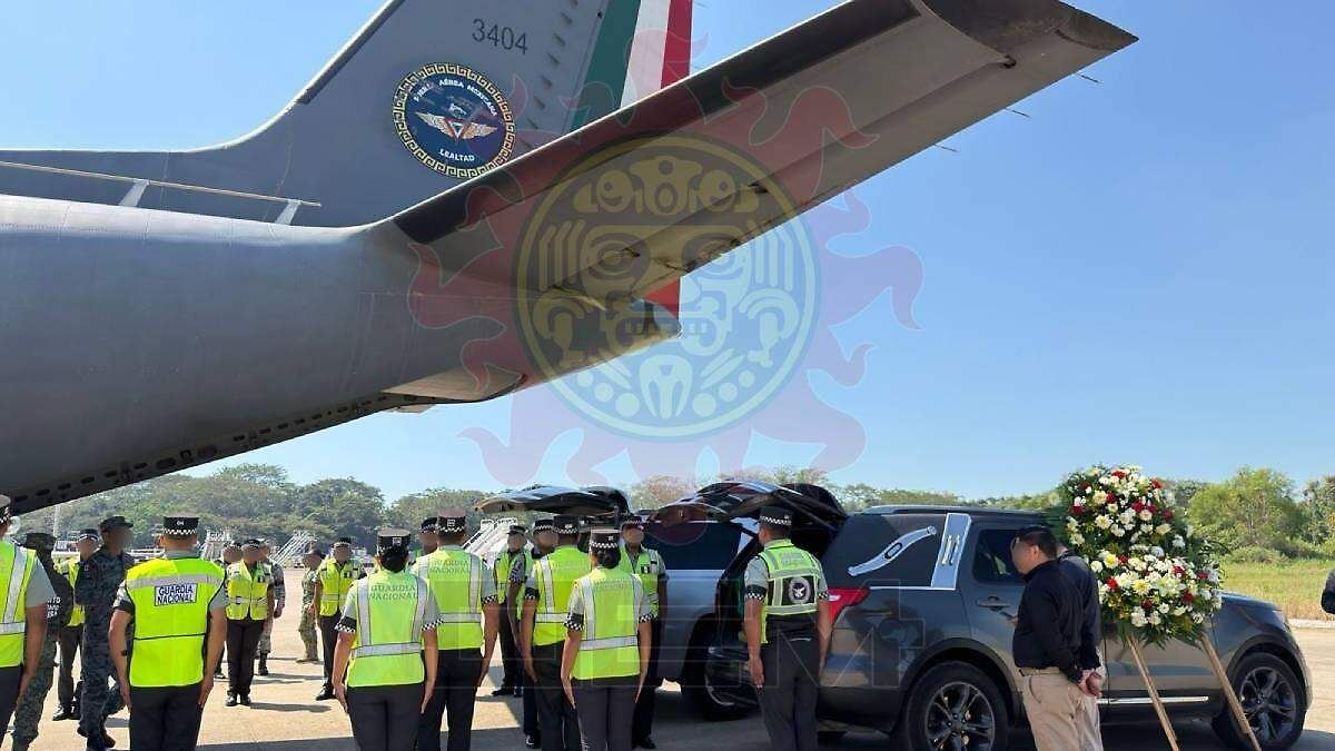 La aeronave C-27J Spartan del Escuadrón Aéreo 302 aterrizó en el Aeropuerto Internacional Carlos Rovirosa Pérez. Dos ataúdes cubiertos con la bandera nacional salieron de la nave. Una carroza fúnebre gris los recibió de inmediato. Compañeros de la Guardia Nacional montaron Guardia de Honor. Familias y autoridades locales presenciaron el momento con respeto profundo.